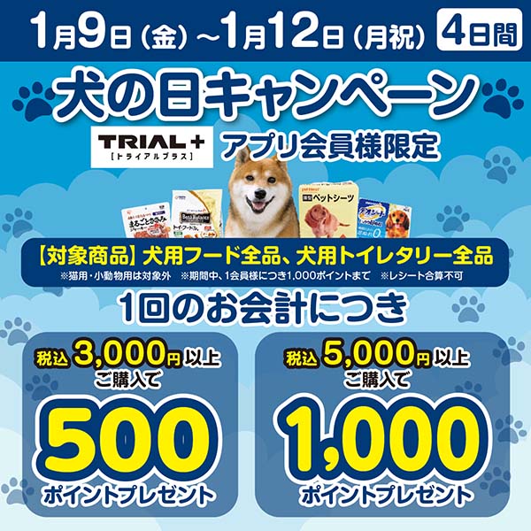 1月9日(金)から1月12日(月祝)の4日間は、愛犬家の皆様に嬉しい特別キャンペーンを実施いたします。