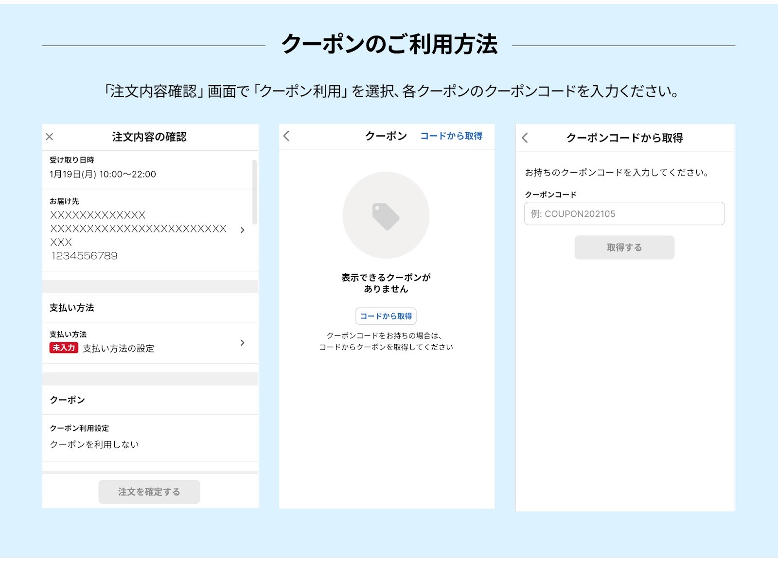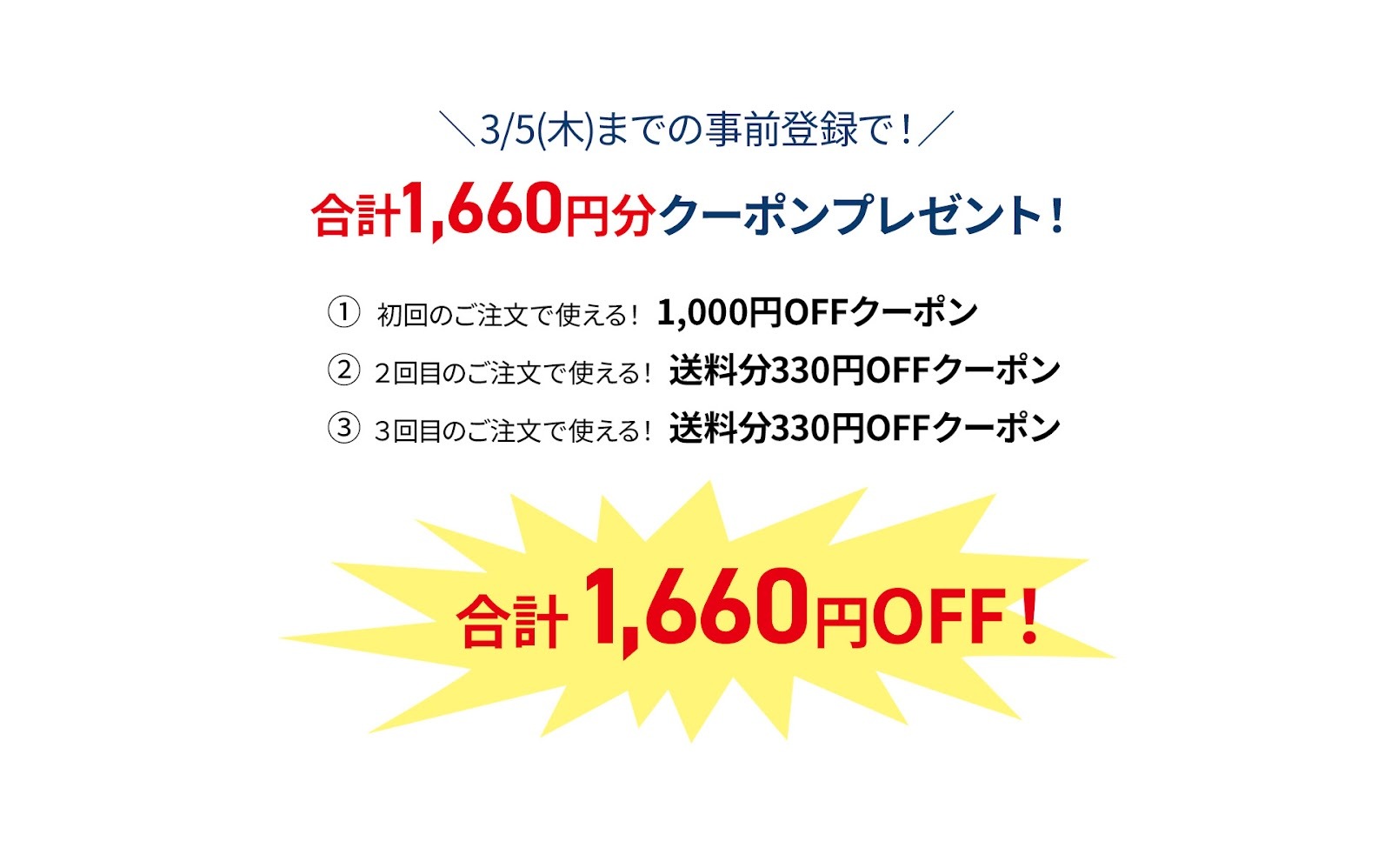 3回目のご注文時に上記のクーポンコードをご入力ください。