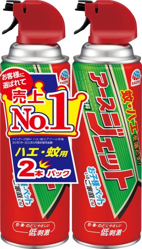 「アースジェット 450mL 2本パック」は、人の目や鼻、喉への刺激を抑えた低刺激で、無香料の殺虫スプレー。