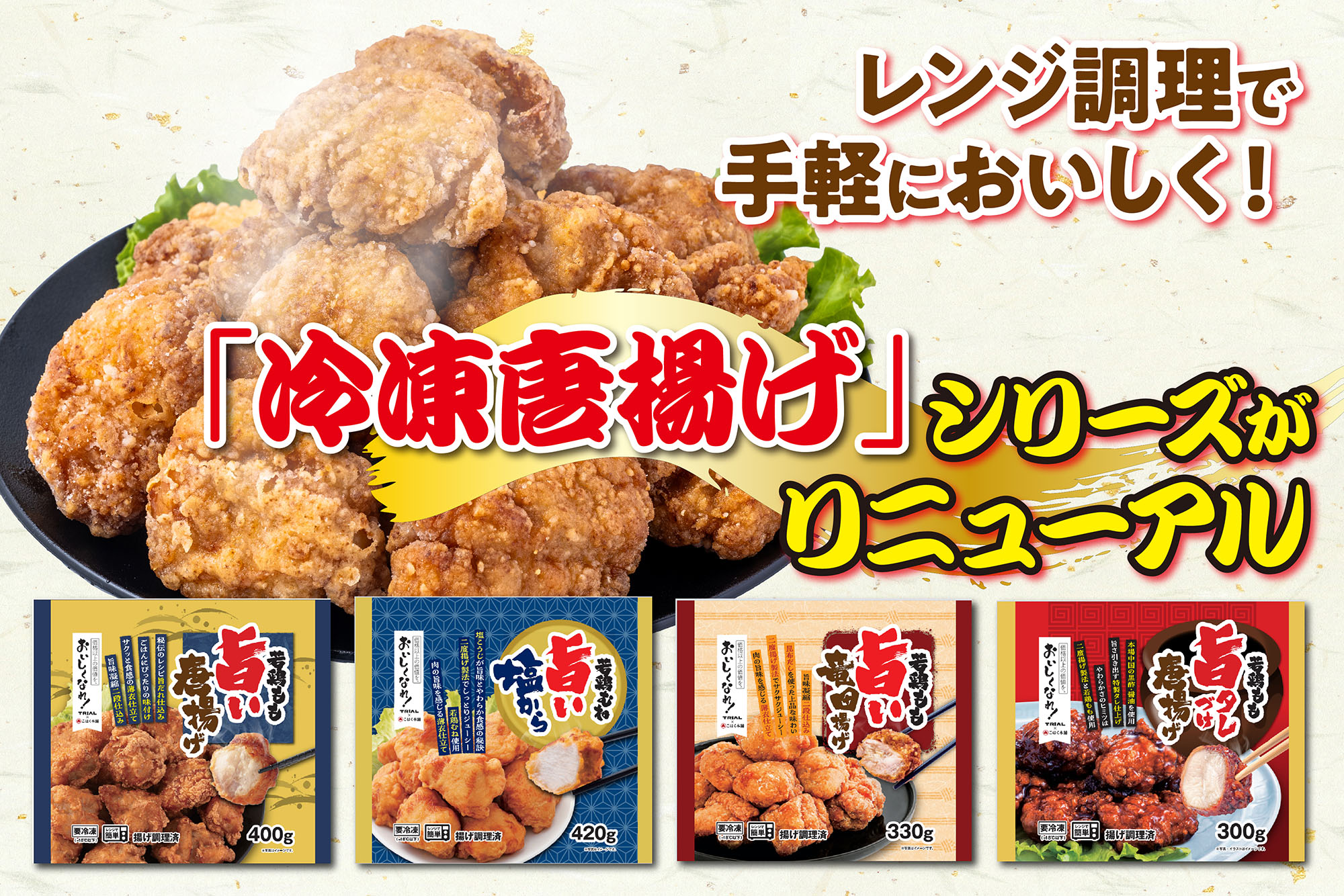レンジ調理で手軽においしく!「冷凍唐揚げ」シリーズがリニューアル