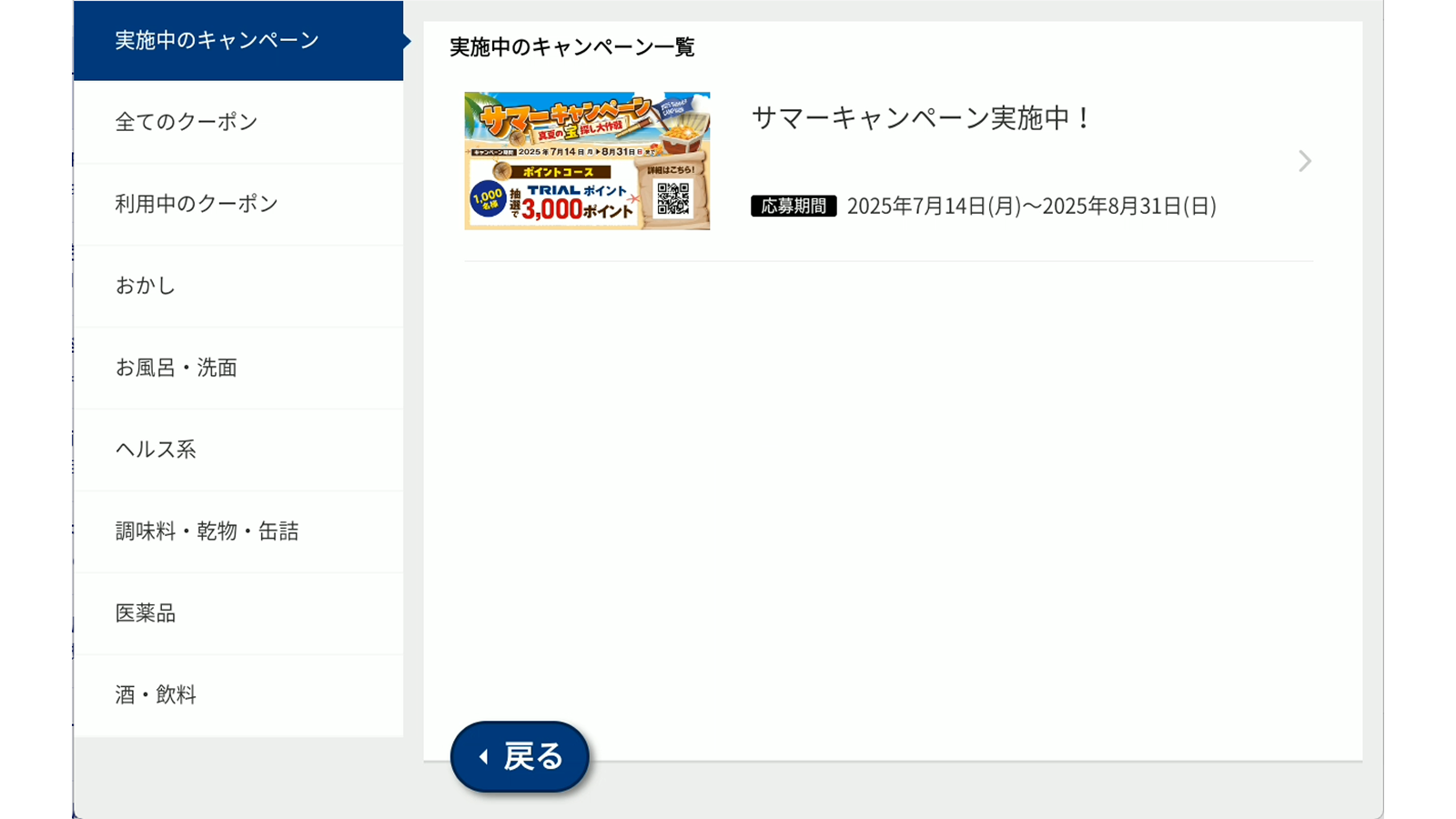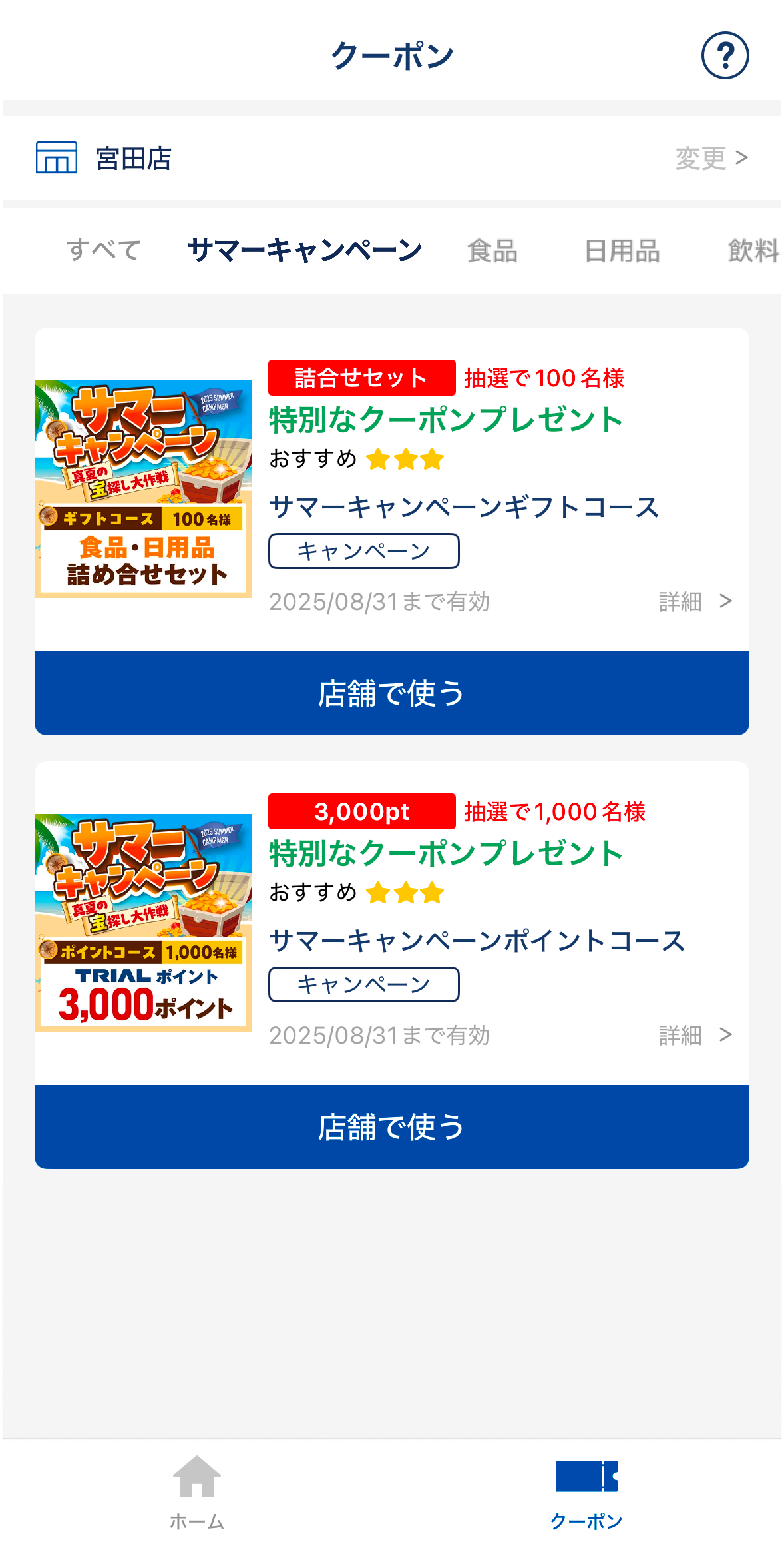 ※誤ってポップアップを閉じてしまった方は、クーポン一覧からサマーキャンペーンのバナーをタップして再表示させることができます。
