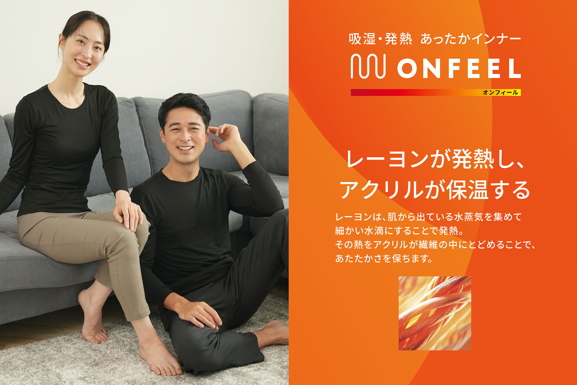 ONFEELのインナーは、寒い季節でも暖かく快適に過ごせる機能性を備え、どんなファッションにも合わせやすいデザインを両立。幅広いサイズ展開で、メンズ・レディースそれぞれに対応しています。