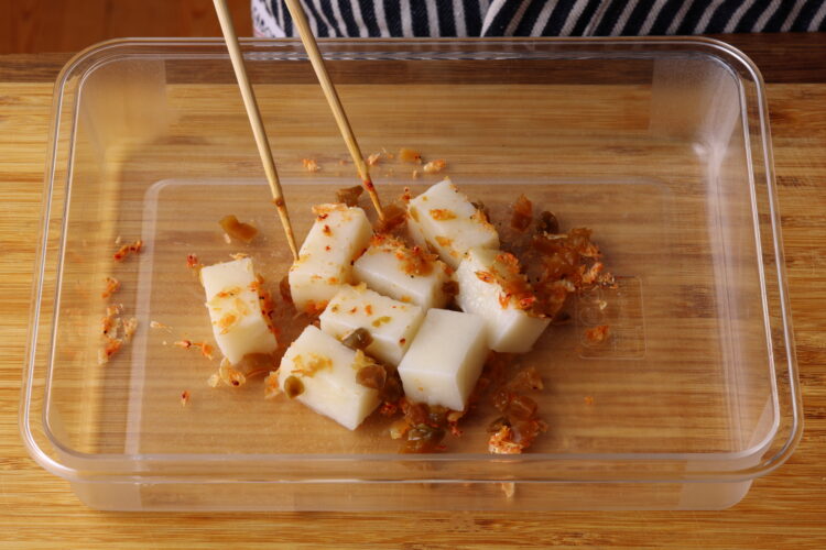 餅のアレンジレシピ〜中華なおつまみ編:えびザーサイ餅
